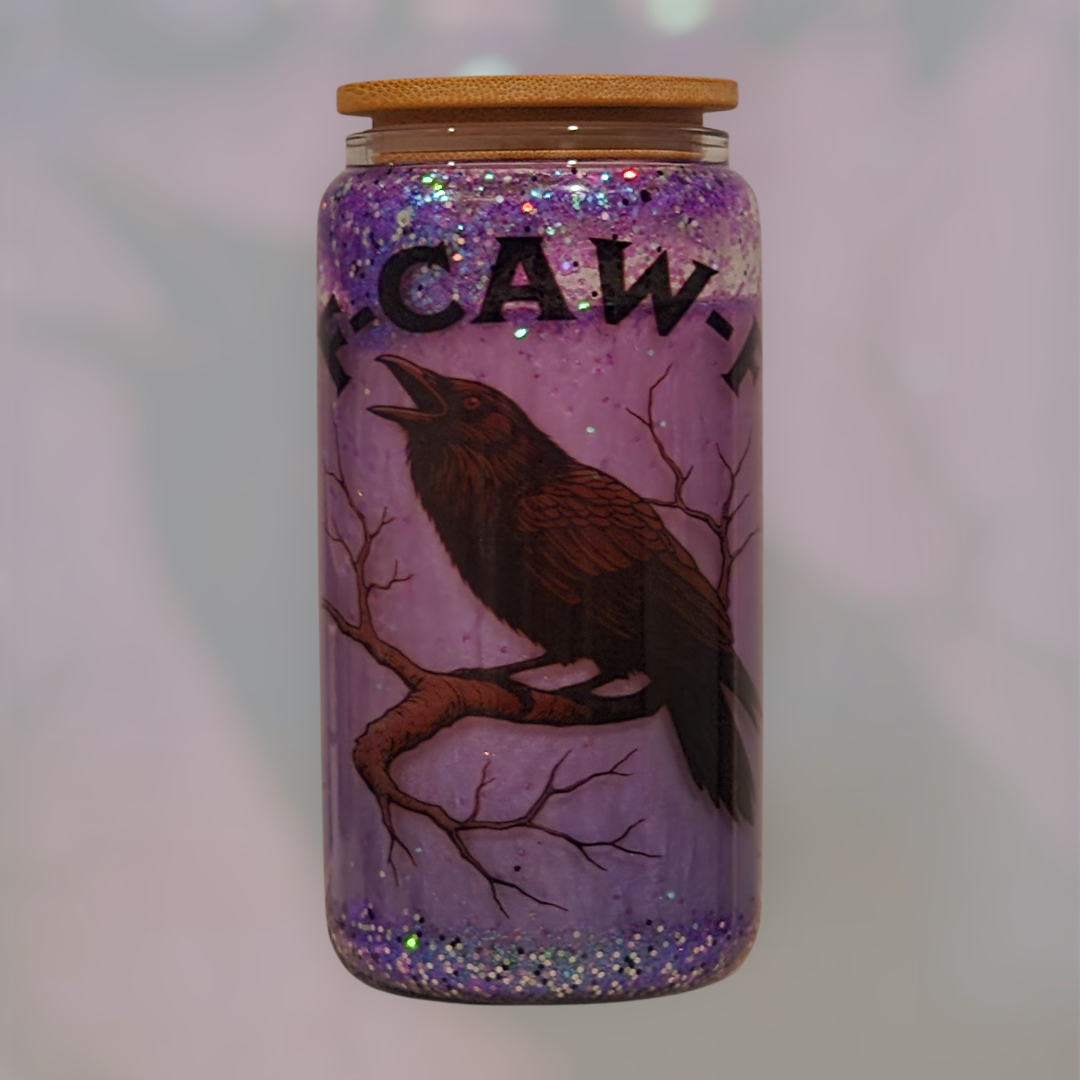 Start your day with a little attitude and a lot of caffeine with this 16 oz snow globe glass, featuring a moody black crow perched on a branch and the hilarious phrase “F-CAW-F.” The swirling purple glitter adds just the right amount of sparkle to match your daily dose of sarcasm.